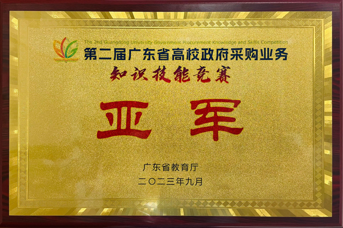 2023年9月22日,由广东省教育厅主办的第二届广东省高校政府采购业务知识技能竞赛复赛在广东轻工职业技术学院南海校区举办,政府采购与招投标管理中心组队参加了比赛并获得亚军,刘惠艳老师荣获“线上最佳选手”。