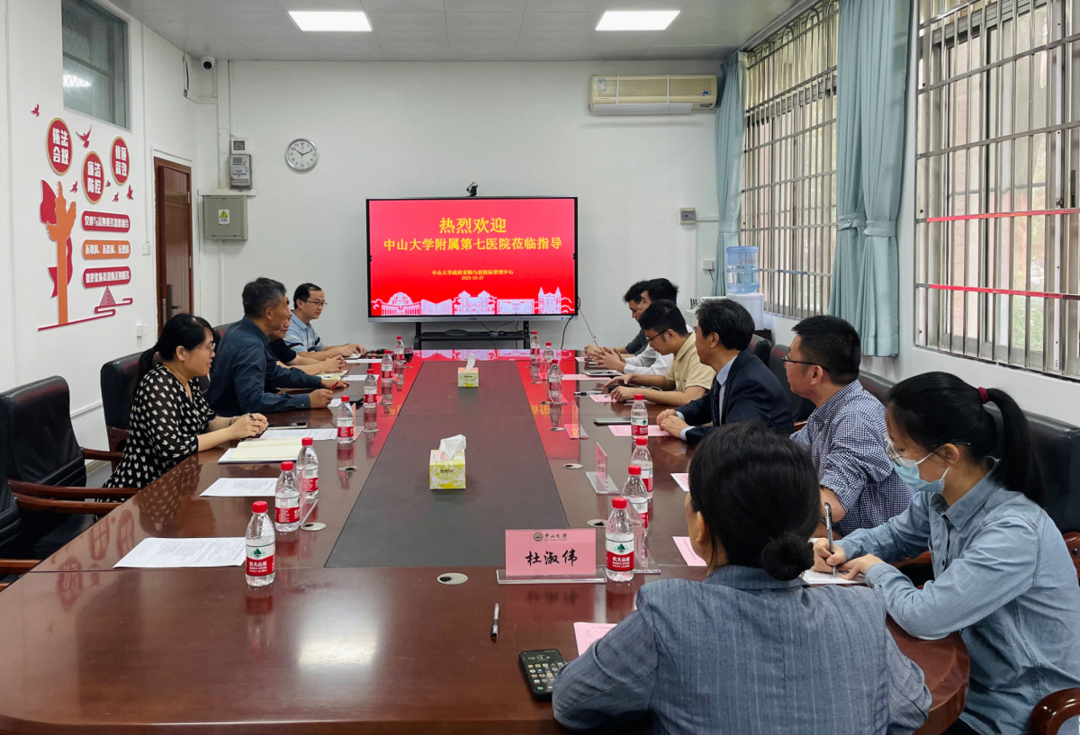 2023年10月27日,中山大学附属第七医院(下称“附属七院”)信息管理处处长郭清顺带队,会同附属七院采购中心、审计处的同事一行7人来本单位调研招标采购工作。中山大学政府采购与招投标管理中心(下称“招标中心”)主任贾延江、副主任赵艳娥及相关工作人员参加会议。会议由贾延江主任主持。