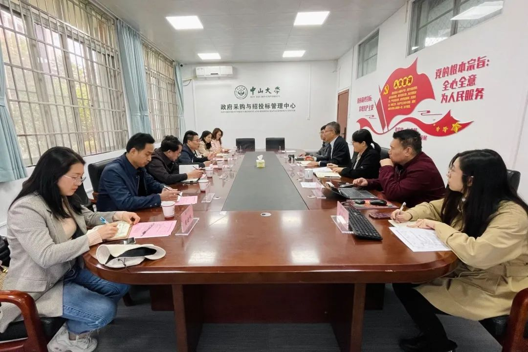 2024年1月11日上午,暨南大学招标采购中心(下称“暨大招标中心”)主任邹建军等一行7人来我校调研招标采购工作,中山大学政府采购与招投标管理中心(下称“中大招标中心”)主任贾延江、副主任赵艳娥和相关工作人员参加会议,会议由贾延江主任主持。