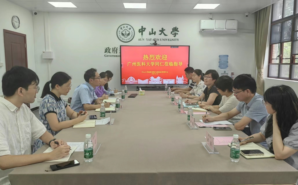 2024年9月12日下午,广州医科大学(以下简称“广医”)采购中心副主任(主持工作)罗玲、采购中心副主任苏丽芝、科研处副处长何芳等一行6人来我校调研招标采购工作,中山大学政府采购与招投标管理中心(以下简称“中大招标中心”)主任岳军、副主任赵艳娥、中山大学设备与实验室管理处计划与论证科主管徐小梅及相关工作人员参加会议,会议由岳军主任主持。